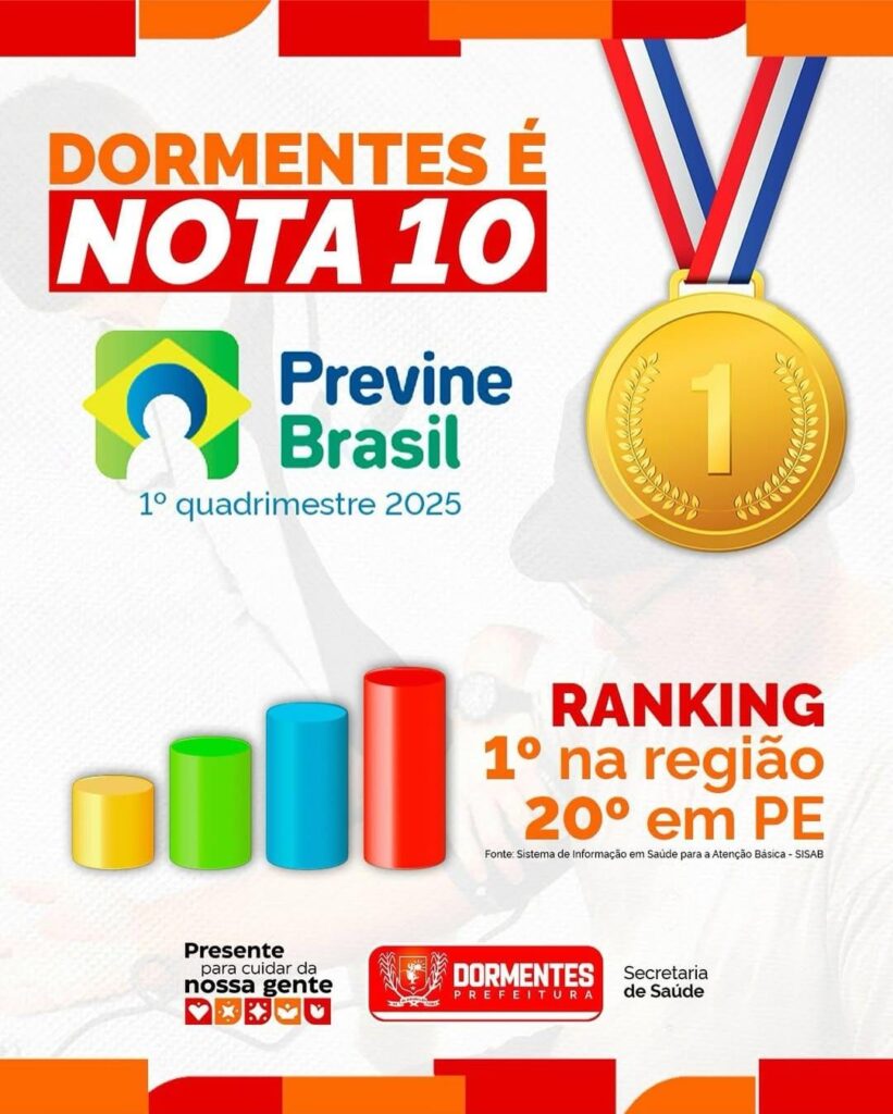 O município de Dormentes alcançou nota máxima no Programa Previne Brasil, conquistando o 1º lugar na região do Vale do São Francisco e o 20º entre os 184 municípios de Pernambuco.